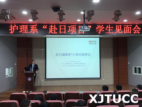 段主任随后在我院护理系工作人员的陪同下,与参加“赴日护士培养项目”的30余名学生进行了面对面的交流。段主任首先为今年7月份通过日语能力考试二级和三级的学生颁发了奖学金。随后通过生动的短片向有意向参与项目的大一新生介绍、讲解了这个项目的特点和优势,大家也通过短片看到了已经赴日的学长、学姐们在日本学习、工作的情况。大四的学姐也向新同学讲述了自己这几年参加项目学习日语以来的体会和感受。现场气氛非常热烈,同学们对将来赴日的工作前景充满美好希望,纷纷表示要刻苦努力地学习,争取尽快通过日语水平考试,为赴日工作打好基础。