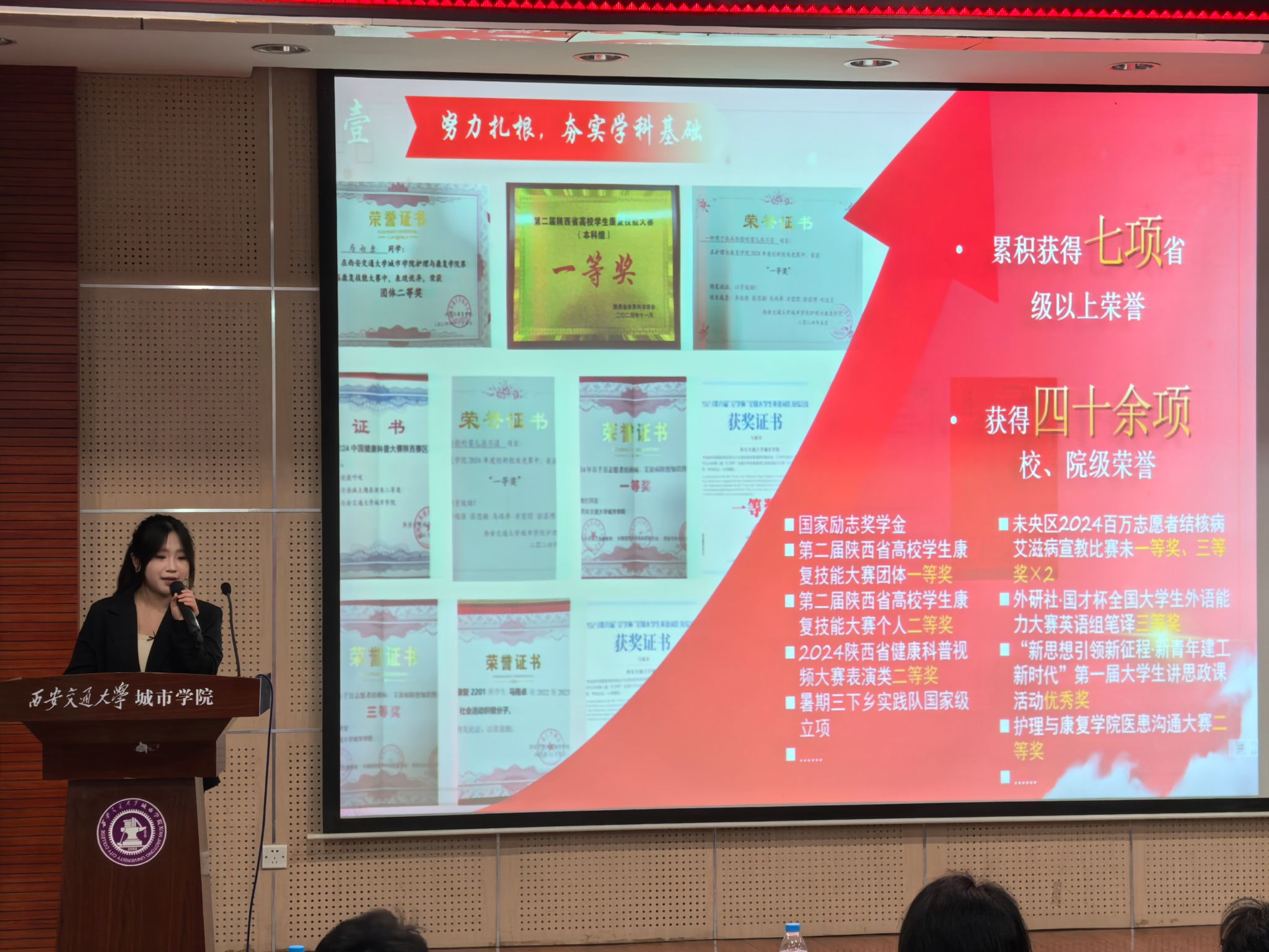 答辩过程严格遵循公平、公正、公开的原则,候选人依次登台汇报。他们分别围绕学业成绩、专业实践、科研创新、志愿服务与综合素质等多个维度展开陈述,通过清晰的逻辑、详实的数据与生动的案例,全面展现了扎实的专业功底与全面的个人能力。多位同学学业成绩名列年级前茅,屡获校级及以上荣誉;在临床实践中,他们积极参与轮岗实习,熟练完成基础护理操作,主动协助危重患者护理,展现出良好的实操能力与职业素养。此外,不少候选人还积极投身科研项目,聚焦护理领域热点开展探索,并利用课余时间走进社区、养老院开展健康宣教与关怀服务,以实际行动诠释护理与康复人员的责任与担当。整场汇报内容充实、表达流畅,充分彰显出新时代护理学子勤学笃行、积极进取的优良风貌。