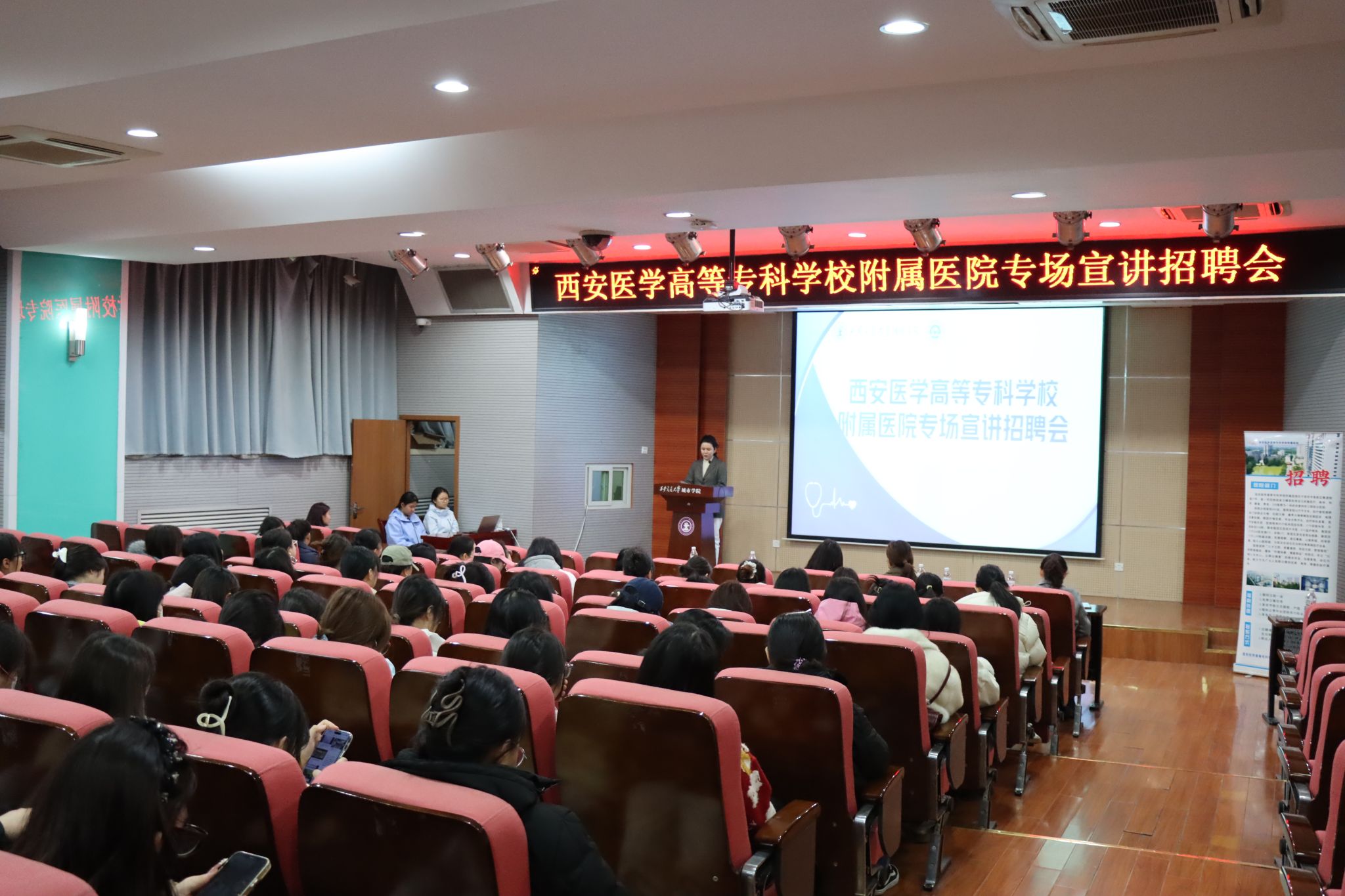 为深化校企合作,搭建人才供需桥梁,拓宽护理与康复学院学生就业渠道,12月4日,学院与西安医学高等专科学校附属医院联合举办专场宣讲招聘会。医专附属医院院长杨杰、人事部主任刘雅文应邀来校宣讲。护理与康复学院常务副院长王梅芳、实验室主任李香香、学生工作负责人王娇丹对医院的到来表示热烈欢迎。