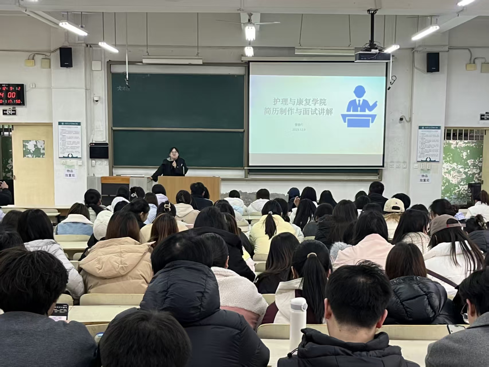 为帮助2023级本科学生做好实习前准备、提升竞争力,12月9日,护理与康复学院求职赋能研习社在B100教室举办“简历制作与面试讲解”活动。本次活动由董鑫行老师主讲,围绕简历撰写与面试技巧进行讲解。